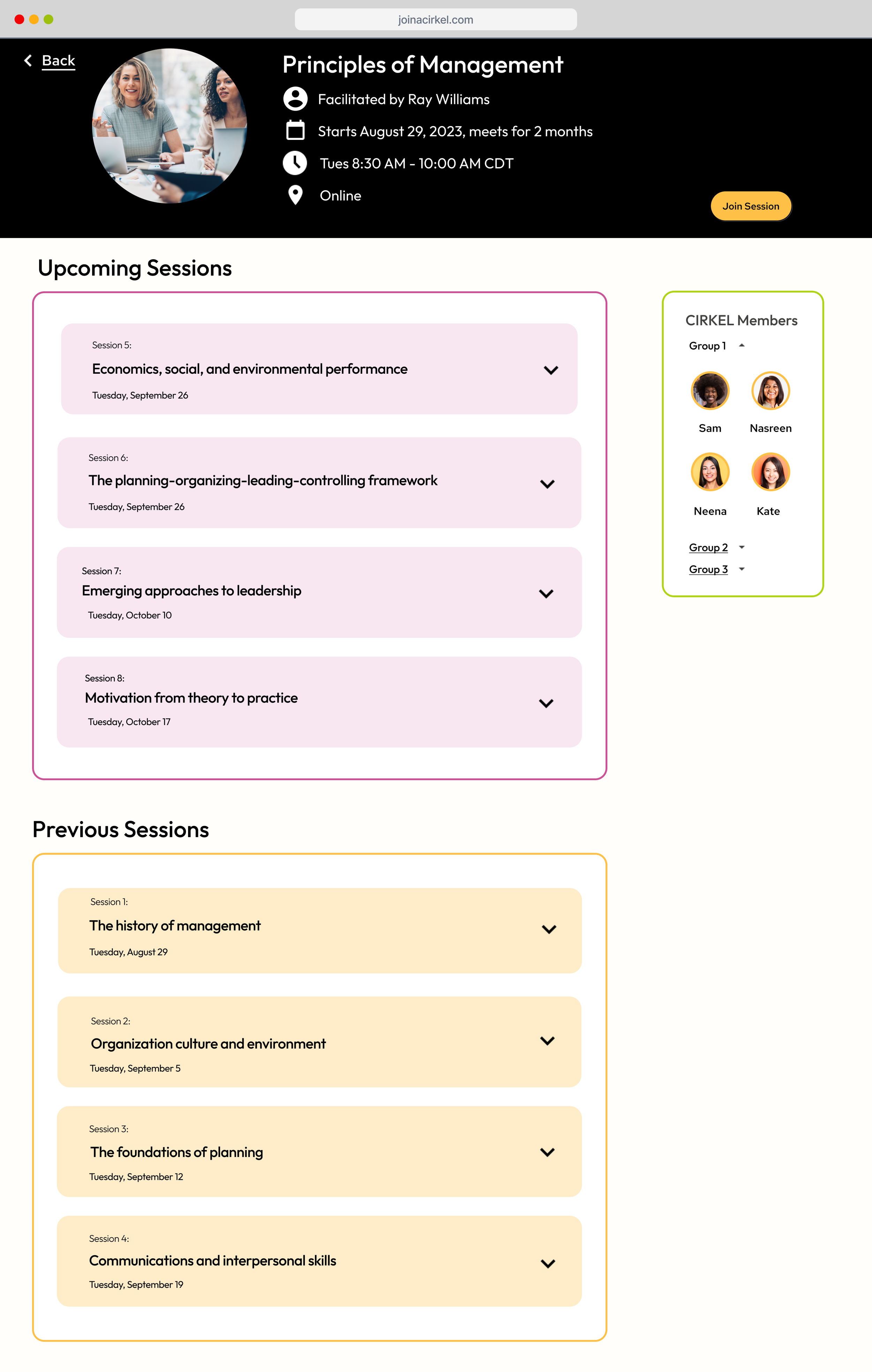 MVP design of B2B/B2C web platform that enables virtual peer learning circles